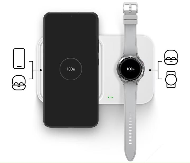 En plus de la charge ultra rapide, cette batterie vous offre la possibilité de recharger votre téléphone ou votre Galaxy watch sans fil avec une puissance pouvant aller jusqu'à 7,5W. Il vous suffit de déposer votre appareil compatible sur la batterie pour lancer la recharge sans fil. Grâce aux 2 ports USB-C en plus de la charge à induction, vous pourrez charger jusqu'à 3 appareils en même temps.