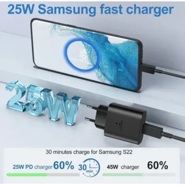 Chargeur d'origine Samsung 25W charge ultra rapide type-c adaptateur EU pour téléphone Galaxy S23 S22 Plus S21 S20 FE Note 20 10 + A54 A34 5G