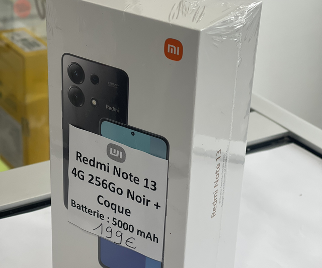 Profitez du Xiaomi Redmi Note 13, version 256Go, en coloris noir, maintenant à seulement 179€ au lieu de 199€ ! Un smartphone puissant avec un écran AMOLED 120Hz, une batterie longue durée, et un appareil photo haute résolution.